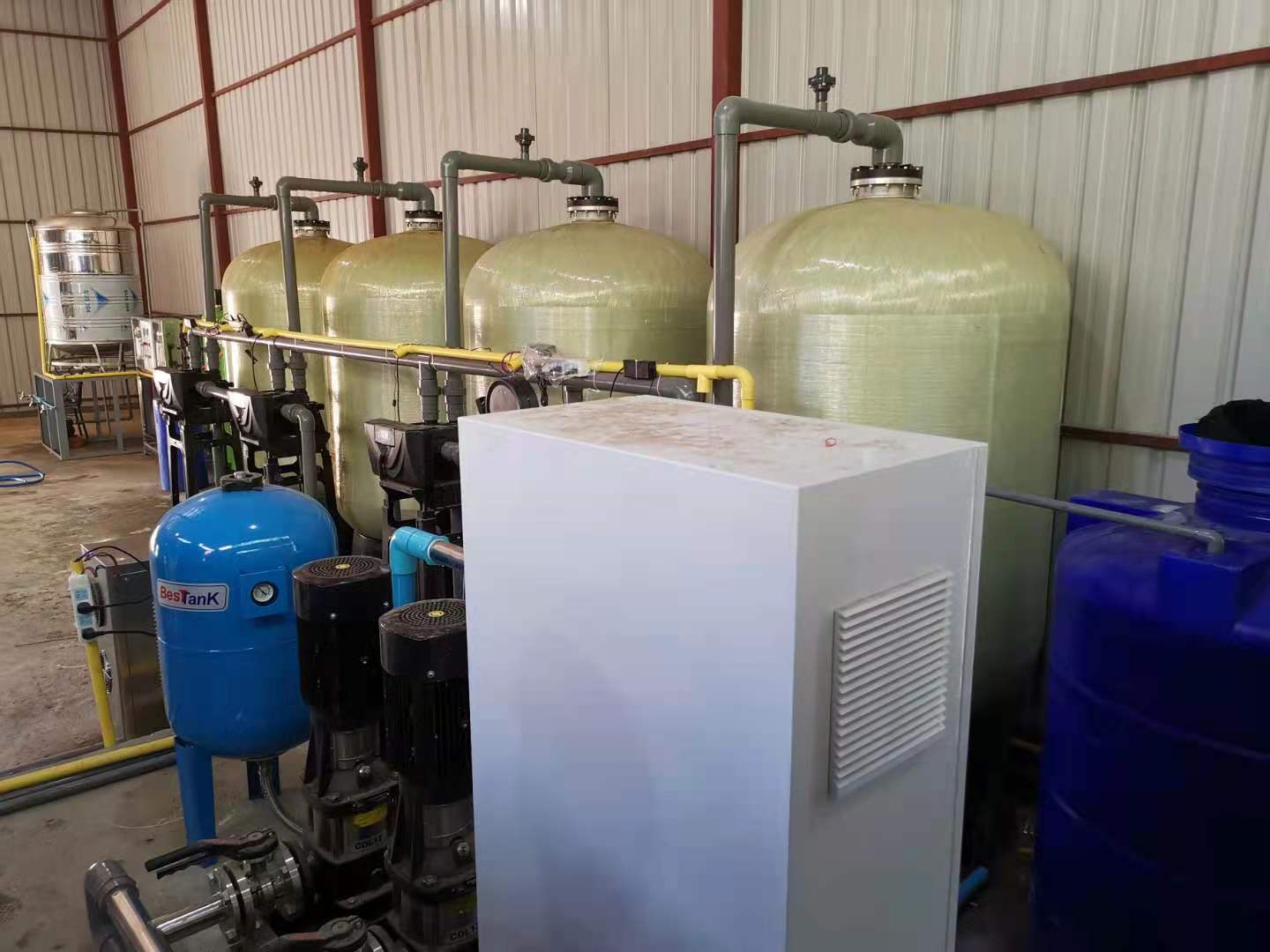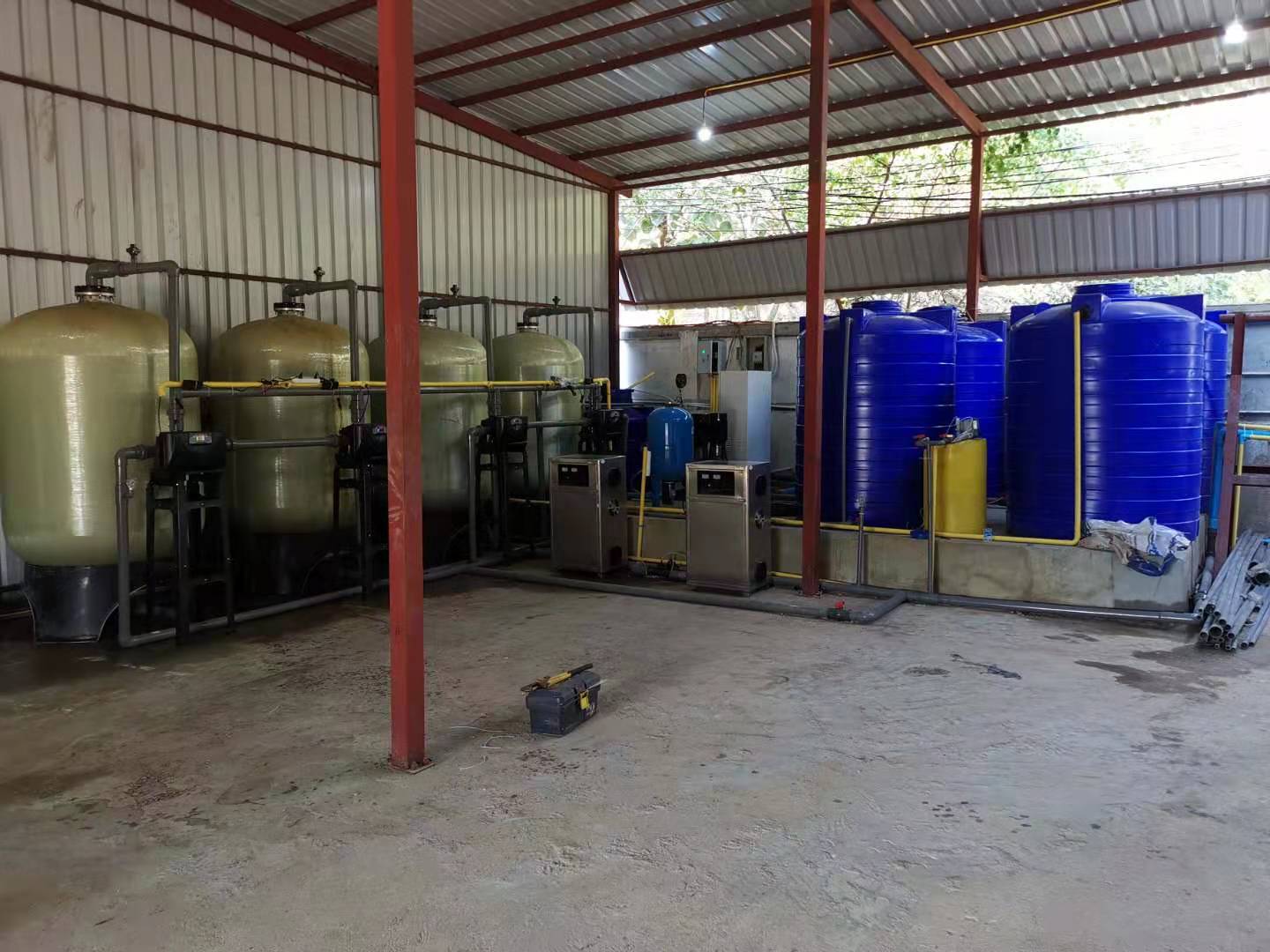 緬甸科技園每小時15噸井水除鐵錳和每小時1噸純凈水設備安裝調試交付。